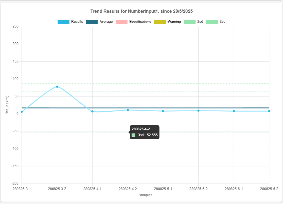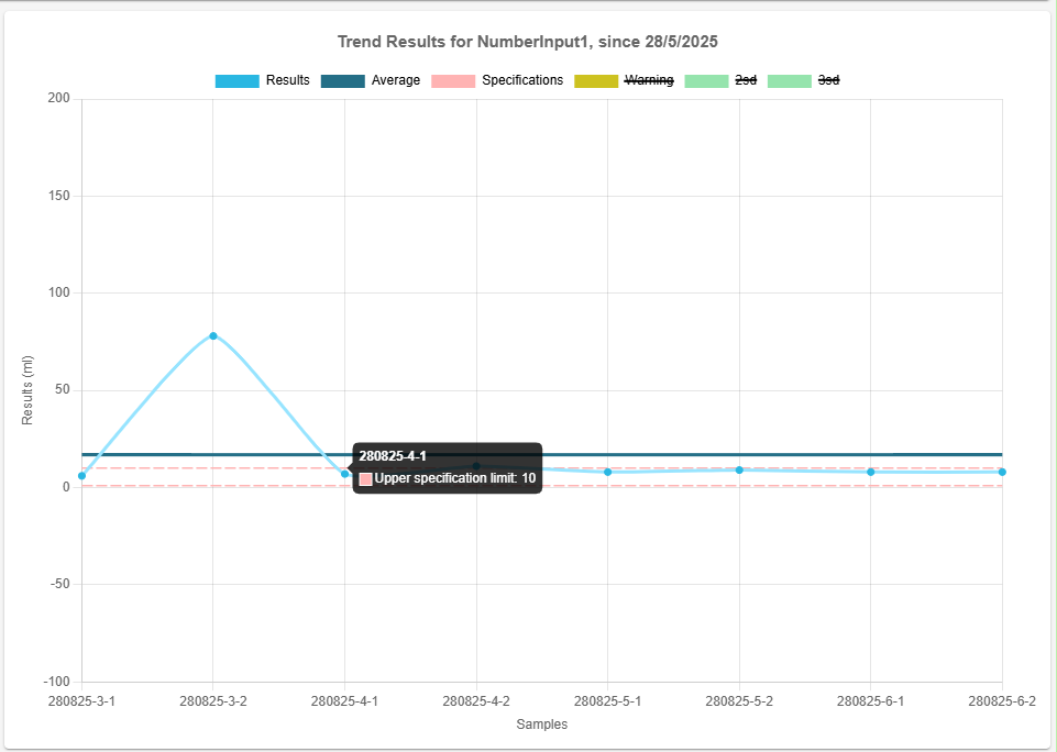 ℹ️ Results on the trend graph will only appear once the test’s results have been submitted.