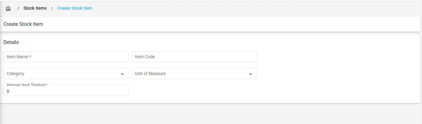 - After filling out the form, click the [ Create ] button to save the new stock item.