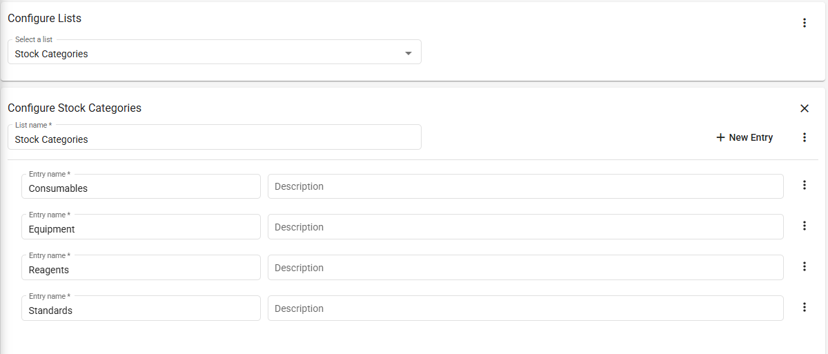 The stock module helps you manage your inventory of materials and consumables. Within the stock module, a stock item is a record of the stock type you will use to record received batches.