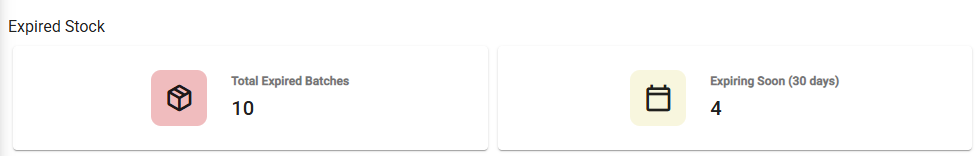 The Expired Stock feature shows all stock that has expired (all stock with an expiry date that ends before today's date), or stock that is expiring soon (within the next 30 days).