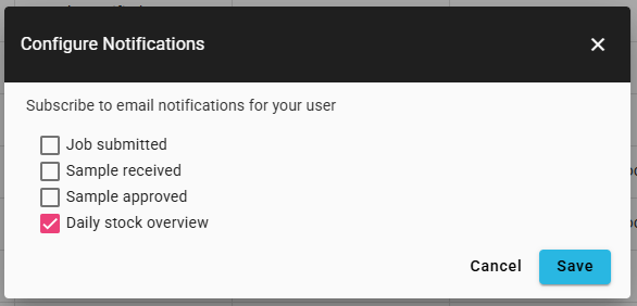 The Daily Stock Overview email notification provides users with a summary of stock items that have expired batches. This helps users monitor critical stock levels and take action on expired materials. The notification is optional and can be enabled or disabled by each individual user.