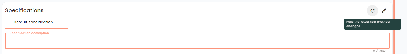If any test methods related to the product have up-versioned since the specifications have been configured, the specifications will have the option to be refreshed.