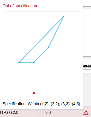 When submitting results, if any coordinate results are out of specification, the specification area graph will also be shown in the submission summary with the failing point.